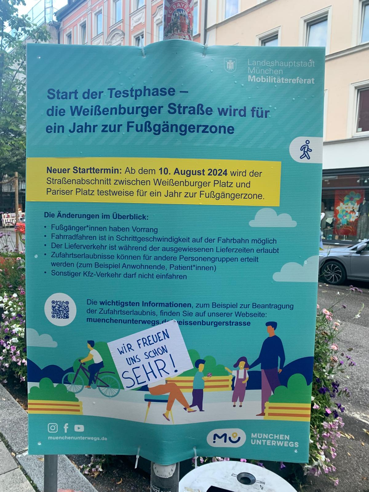 Am 12. August startet leicht verspätet die vom Bezirksausschus beschlossene einjährige Testphase der Fußgängerzone in der Weißenburger Straße.
