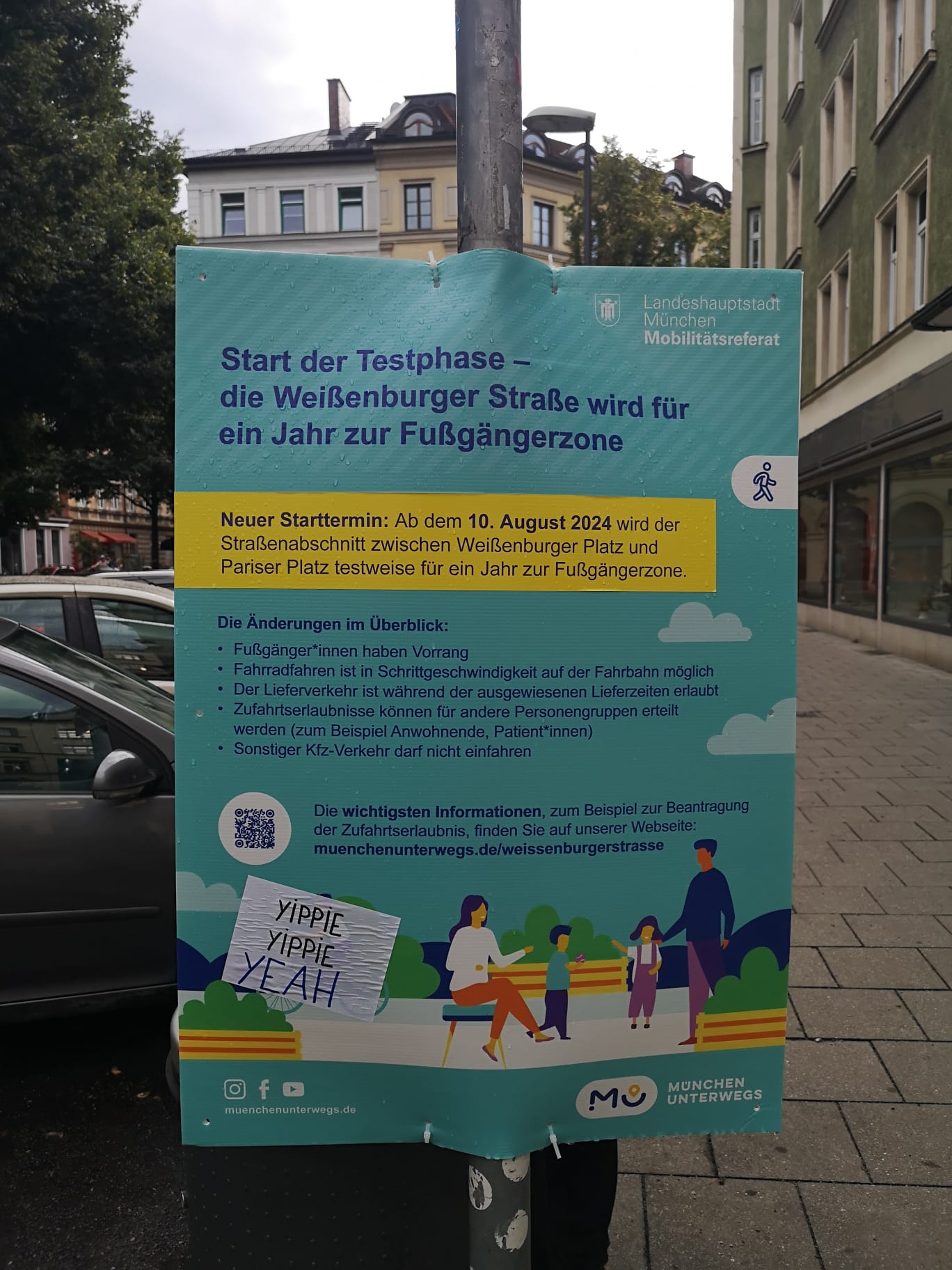 Die Vorfreude auf die Fußgängerzone zeigt sich außerdem bei immer mehr Anwohner*innen und Gewerbetreibenden auf Plakaten, Stickern, Aushängen und in Straßenbefragungen.